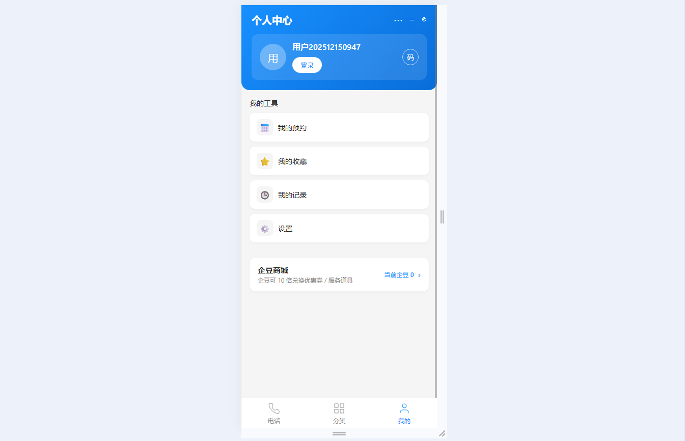 ● 账号与登录:手机号快捷登录绑定用户ID,登录后可累计企豆、查看个人预约与记录,支持退出登录