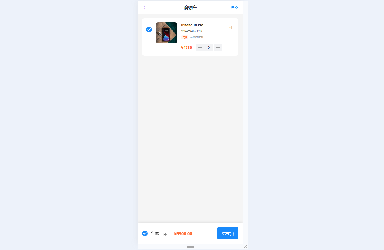 ● 购物车管理:支持商品增删、数量调整与选中状态切换,全选/取消全选功能,实时计算选中商品总价,显示数量徽章,支持多商品批量结算