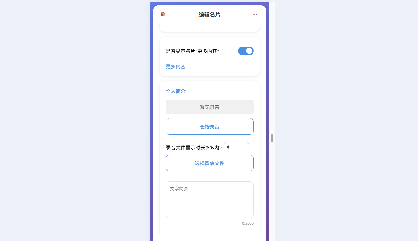 ● 可开关名片“更多内容”的显示权限