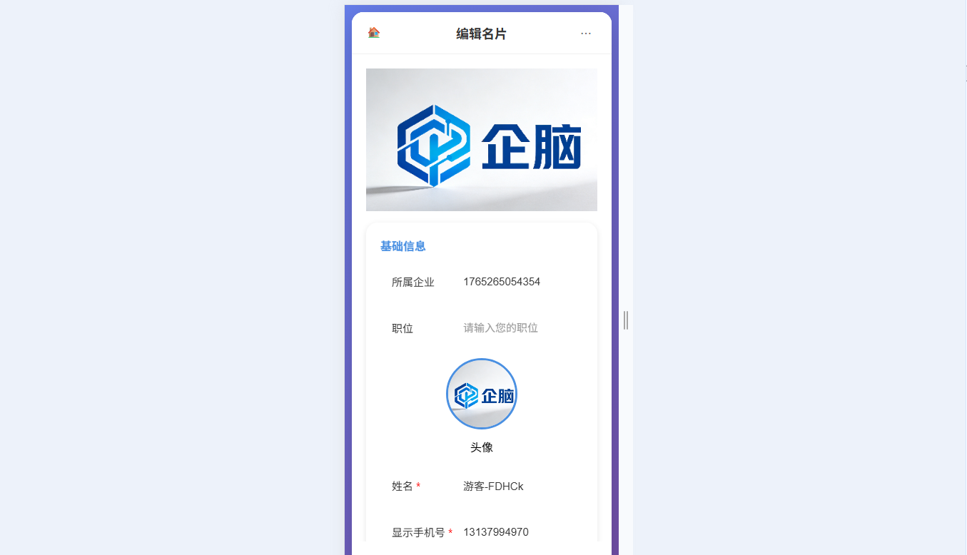● 支持名片基础信息编辑(所属企业、职位、姓名、手机号等)