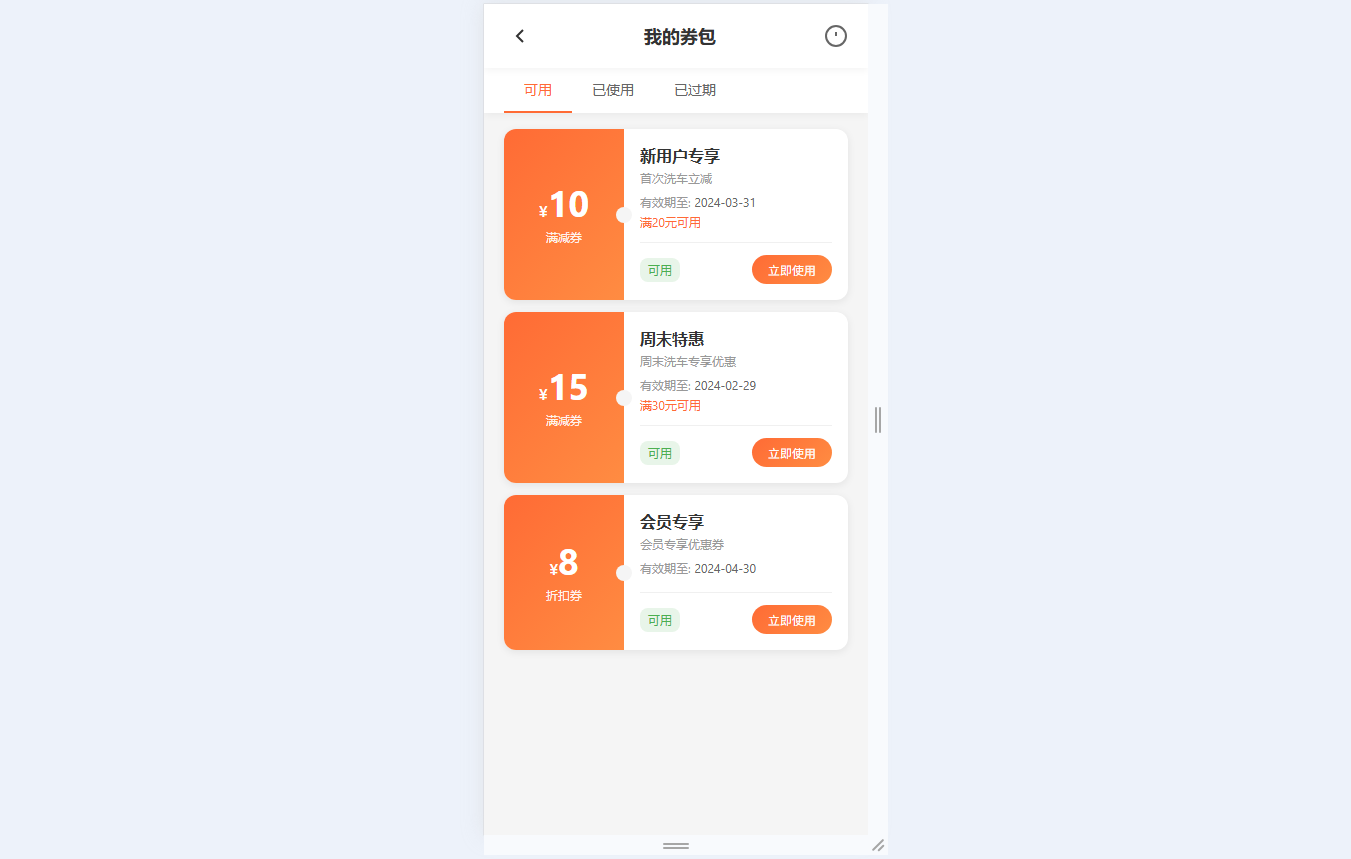 精准优惠券管理(分类查看、条件说明、一键使用)