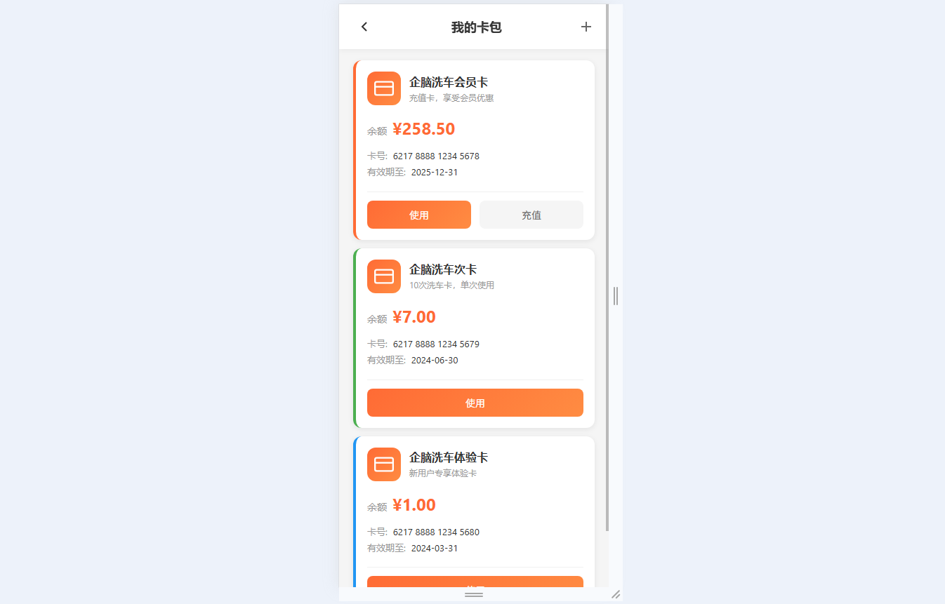 多元卡包管理(会员/次卡/体验卡,余额充值查询)