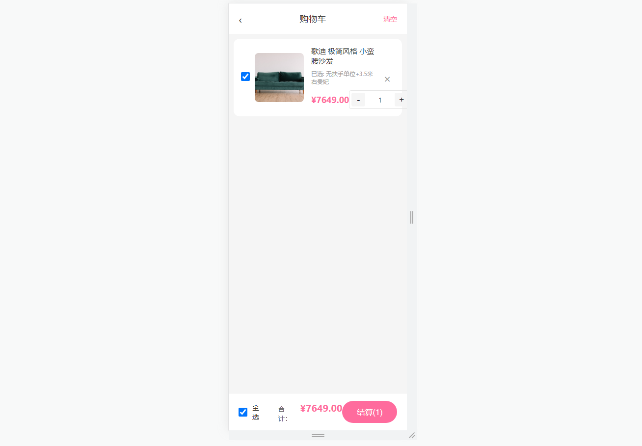● 购物车管理:商品增删、数量控制、全选/单选功能,实时计算选中商品总价与数量,空购物车提供友好提示与“去逛逛”引导