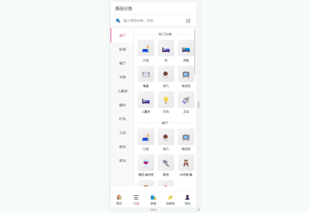 ● 功能闭环完整:覆盖商品浏览-分类筛选-品牌查看-详情了解-加购管理全购物链路,满足家具电商核心消费需求